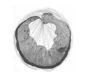 I. A imagem é de caráter orgânico, e o olhar sobre ela é reiterado pelos feixes de linhas organizados em ciclos e pelos demais aspectos formais e simbólicos.